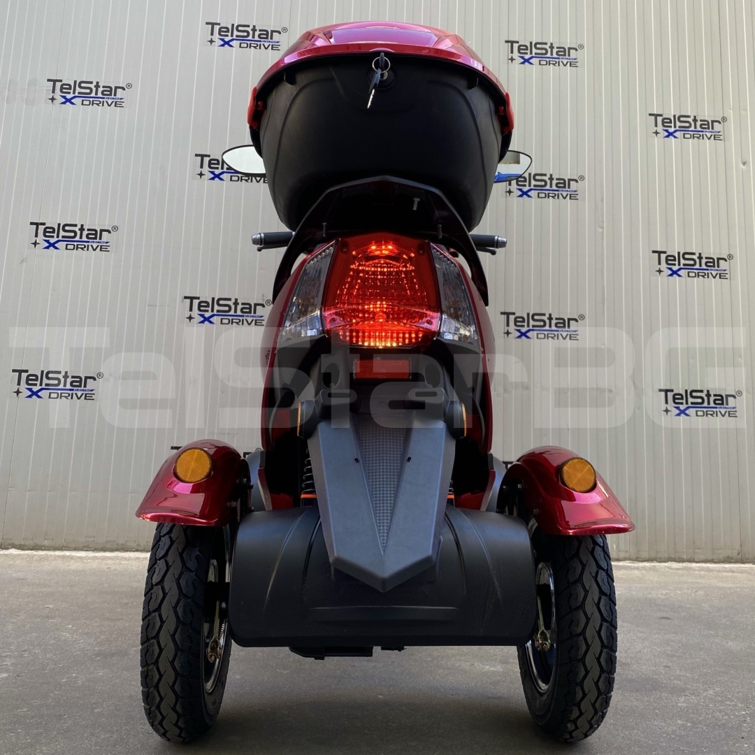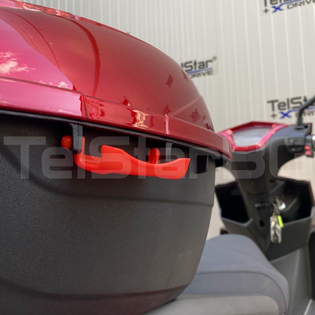 Допълнителна информация - пълна светлинна окомплектовка, къси, дълги, габарити, мигачи, стопове - клаксон - 3 скорости + 1 задна - светещ дисплей с показание за скорост, пробег, ниво на батерията, светлини и др. - голям заден кош за багаж със заключване - дискова спирачна система - огледала за предно и задно виждане - независимо предно окачване MACPHERSON - с включено зарядно устройство в комплекта - 2 бр. ключове с 2 бр. дистанционни + аларма и имобилайзер подарък към тях при закупуване! - налични цветове: син, червен Подарък голям заден куфар за багаж със заключване при закупуване!