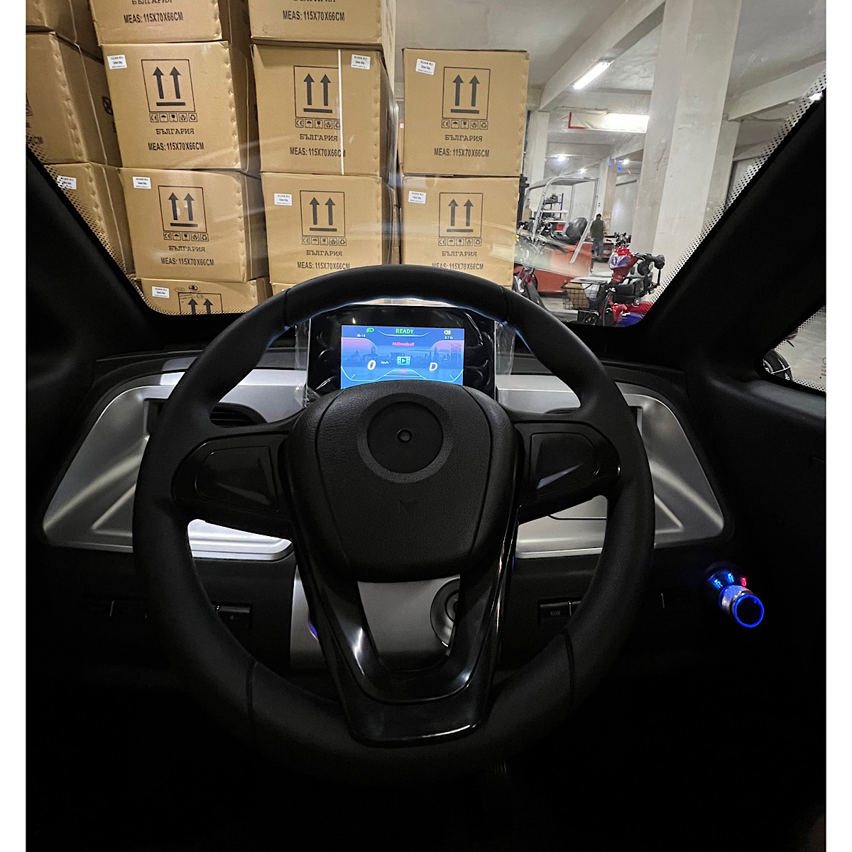 | Допълнителна информация | Брой места: 3 - Голям ГОЛЯМ дигитален LCD дисплей на таблото показващ над 5 параметъра - Електрическа чистачка с три режима на работа + бутон за пръскане за почистване на предното стъкло - Пълна светлинна окомплектовка : Висок клас LED фарове, Мигачи, Стопове, Габарити, Аварийни светлини - Клаксон- Поставка за напитка на таблото - USB port - Маслени дискови спирачки - Огледала за задно виждане - CE сертификат + пълен пакет с документи за регистрация в КАТ. Възможност за бял или черен интериор при поръчка. |