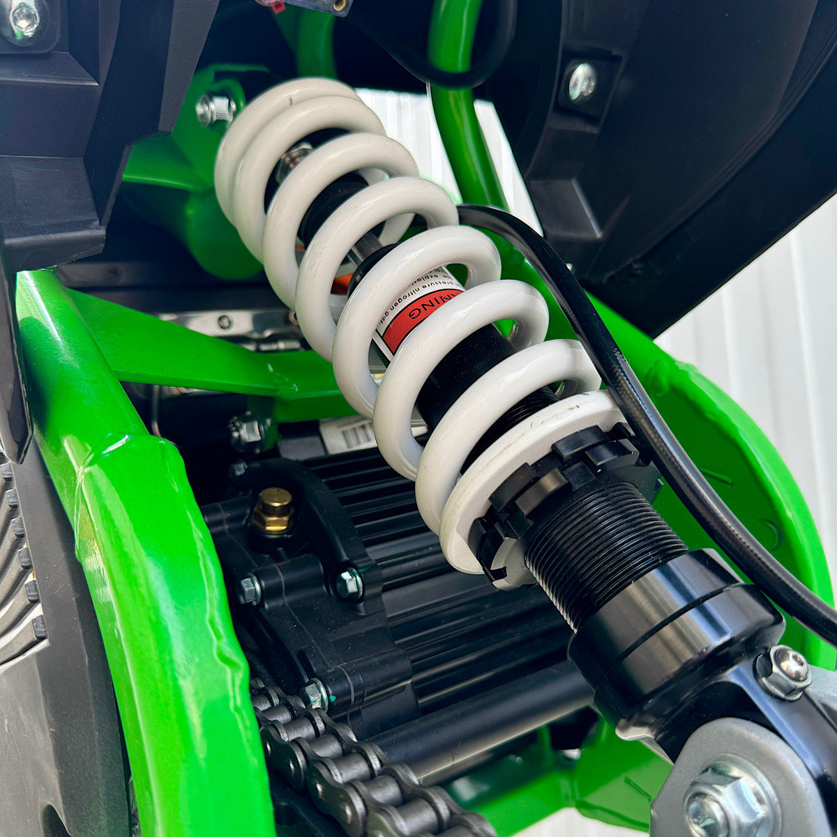 | Допълнителна информация | Крайна предавка: 14T/48T верига 428 - 53 връзки Рамка/Джанти: Стомана Спирачки: Предни и задни хидравлични дискови Окачване: 2 хидравлични предни амортисьори, 1 заден хидравличен амортисьор с амортизация Ход на предния амортисьор: 170 мм Ход на задния амортисьор: 52,5 mm-57,5 mm Дросел: променливо завъртане Седалка: Подплатена Измервател на батерията: Да Ключов старт: Да Включено зарядно: Да (84V/5A) Необходимо сглобяване: Да Междуосие: 1190мм Височина на седалката: 90см |