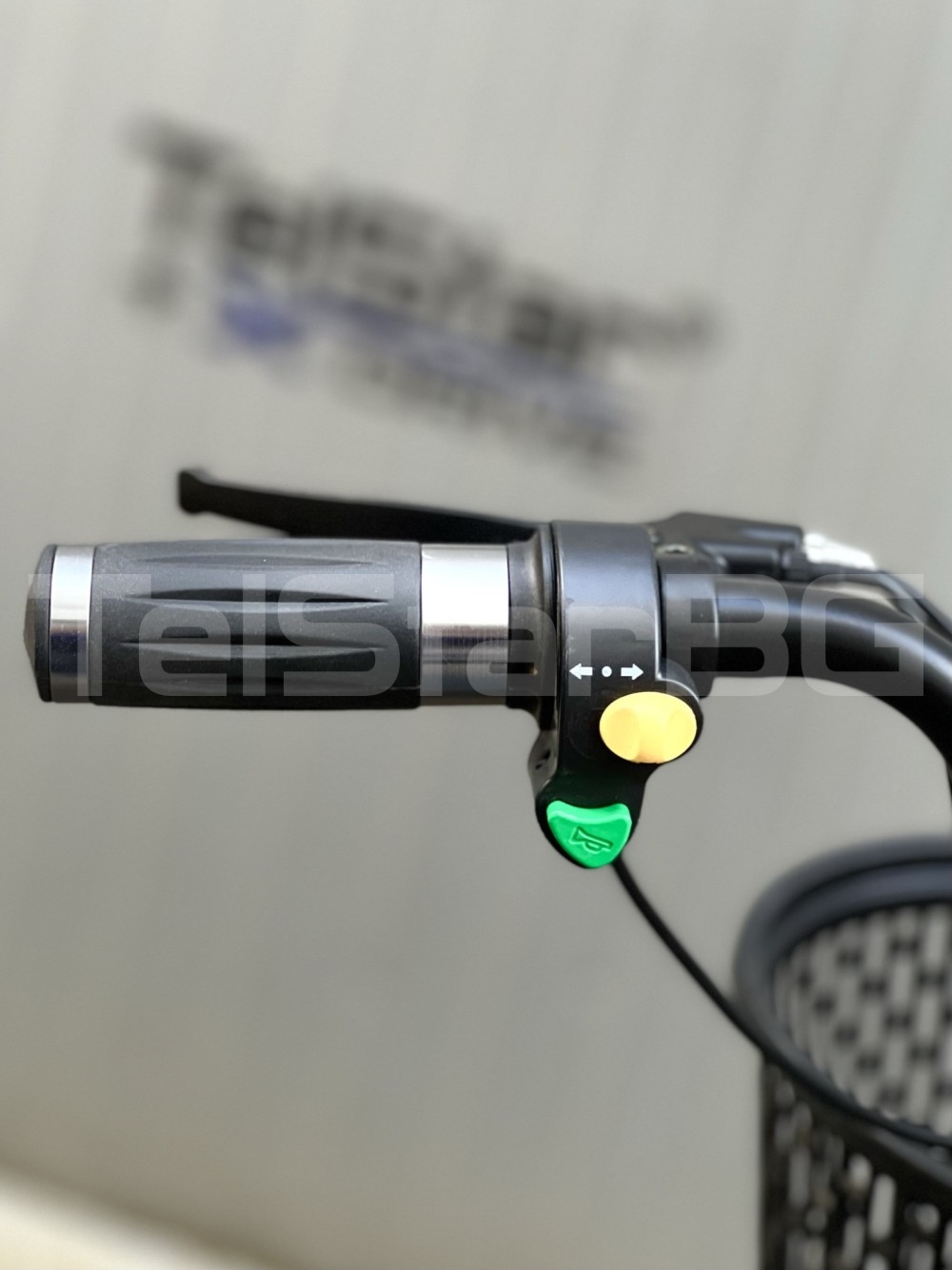 Допълнителна информация- Зарядно устройство за 220V включено в комплекта - Три предни скорости- бавна, средна и бърза - Преден LED фар с индикатор за нивото на батерията - Пълна светлинна окомплектовка- Двойни предни LED фарове + ляв + десен мигач + заден стоп и др. - Клаксон - Предна амортисьорна вилка - Задни ресьори - степенка. - ПОДАРЪК:, допълнителен втори LED фар ,,Лупа