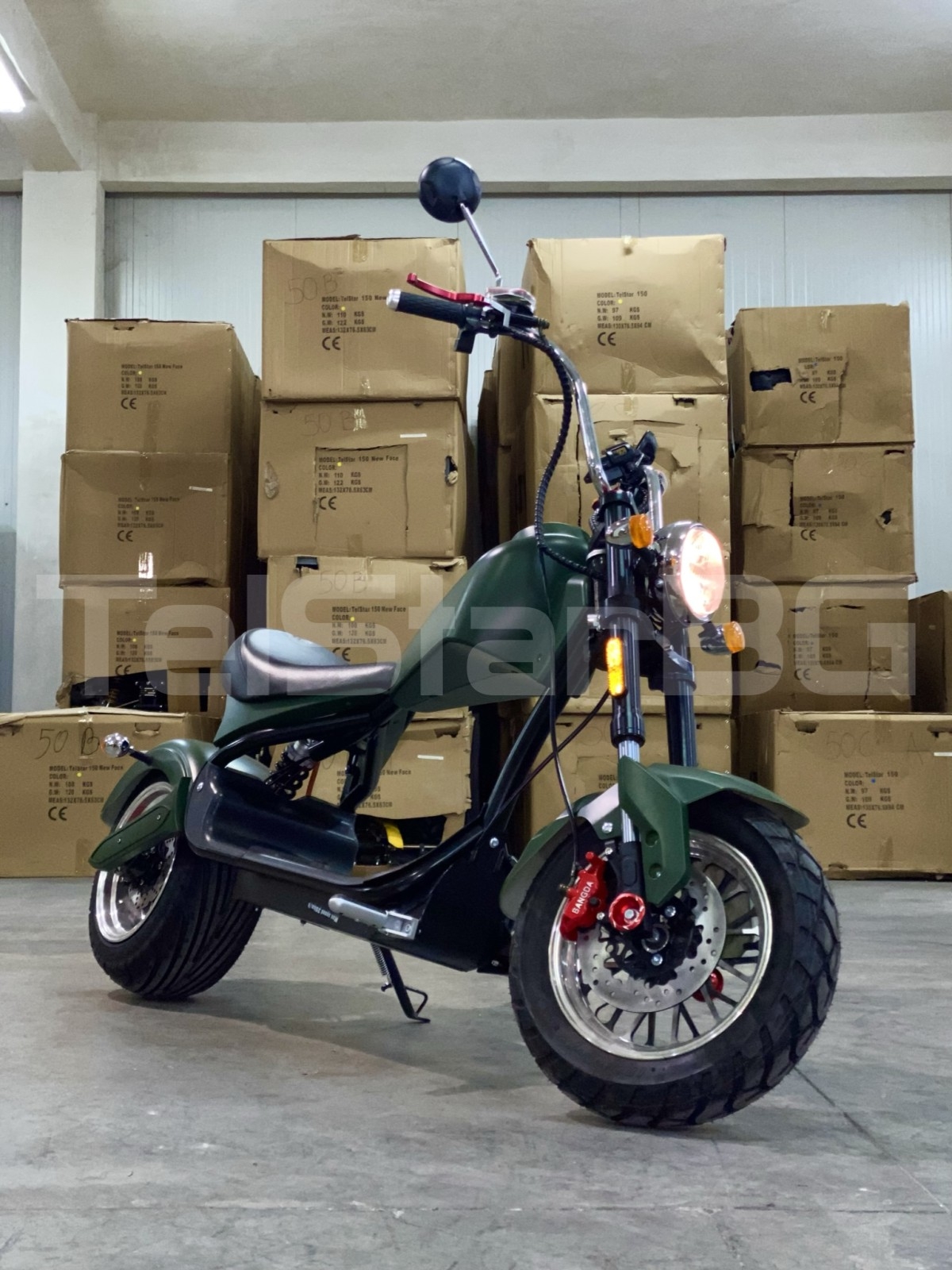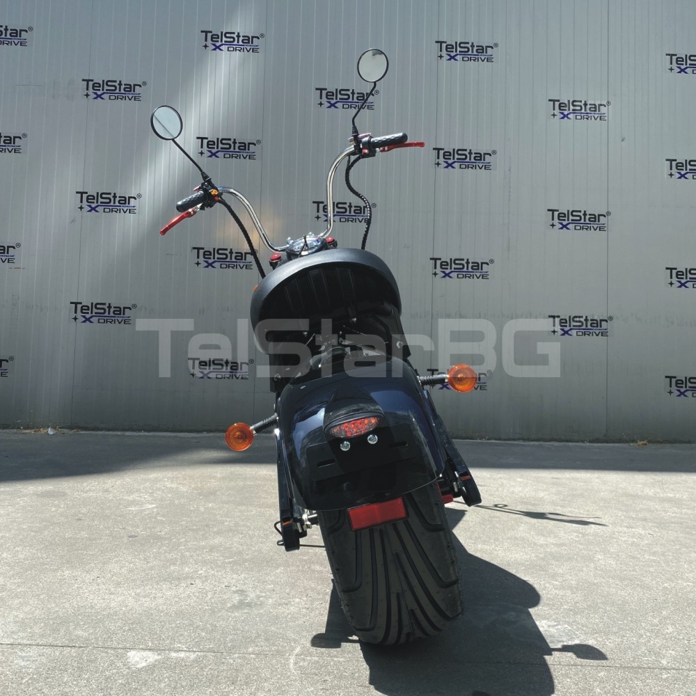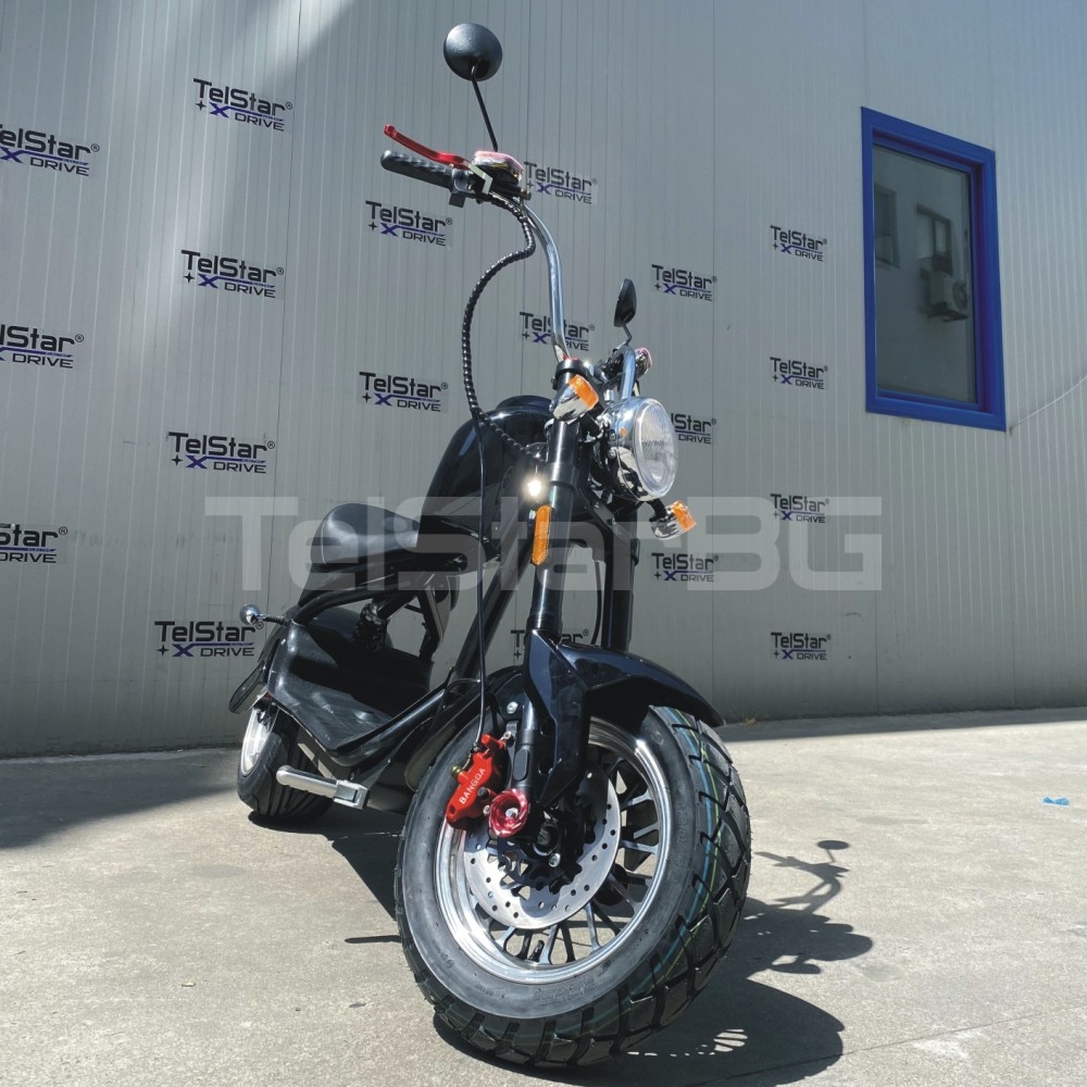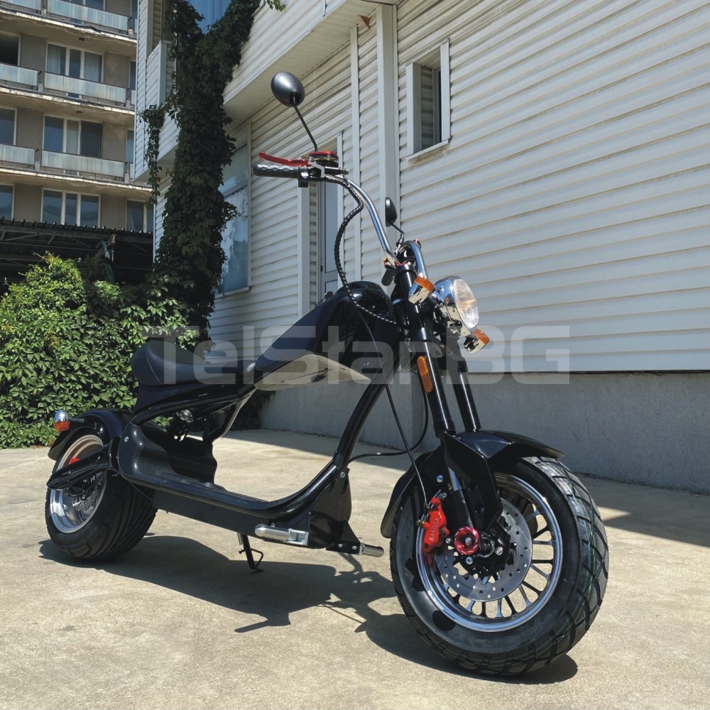 Най-новият модел електрически скутер Американско HARLEY X33 с луксозна пистова седалка, предни и задни амортисьори, с задна широка пистова гума, мощен 3000W безчетков мотор, иновативно LCD табло върху резервоара на мотора, хидравлични дискови GR BANGDA спирачки, пълна светлинна окомплектовка