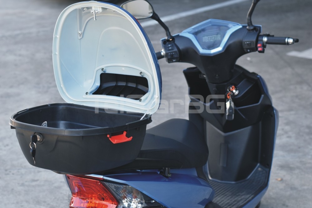 Допълнителна информация- пълна светлинна окомплектовка, къси, дълги, габарити, мигачи, стопове - клаксон - 3 скорости + 1 задна - светещ дисплей с показание за скорост, пробег, ниво на батерията, светлини и др. - с подарък огледала за задно виждане при закупуване! - голям заден кош за багаж със заключване - спирачна система: предна хидравлична дискова спирачка, задни барабанни спирачки - окачване- предни/задни амортисьори - с включено зарядно устройство в комплекта - 2 бр. ключове с 2 бр. дистанционни + аларма и имобилайзер подарък към тях при закупуване! - налични цветове: светлосин металик, червен металик, сив металик (хамелеон), бял , необорудвано тегло 50кг