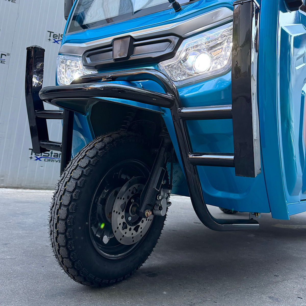 Допълнителна информациязадно предаване, с голям диференциал, подсилено предно окачване, подсилено задно окачаване, големи балонни OFFROAD гуми за неравни терени с алуминиеви джанти, многолистови задни ресьори, клаксон, голям светлодиоден LED фарове с ЛУПА, предна подсилена амортисьорна вилка, дигитален LCD дисплей показващ скорост, заряд и волтаж на батерията, пробег, светлини, пълна светлинна окомплектовка- преден фар, гарбарит, стопове, предни /задни мигачи странични светлоотразители тристранни канати за по- лесно товарене и разтоварване, висок клирънс, аларма и светлинна сигнализация ъгъл на изкачване- 25° спирачна система- кормилна спирачка, крачна спирачка и ръчна спирачка за паркиране, външни размери на карго платформата:широчина 110см дължина 160см, цена за сглобяване 140лв