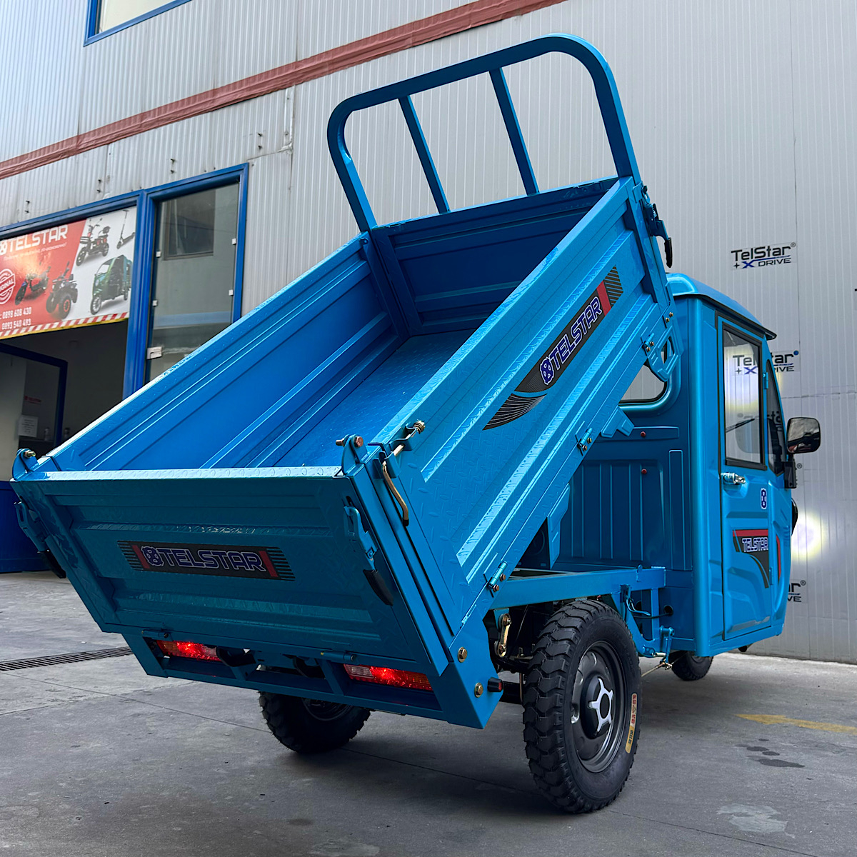 | Допълнителна информация | задно предаване, с голям диференциал, подсилено предно окачване, подсилено задно окачаване, големи балонни OFFROAD гуми за неравни терени с алуминиеви джанти, многолистови задни ресьори, клаксон, голям светлодиоден LED фарове с ЛУПА, предна подсилена амортисьорна вилка, дигитален LCD дисплей показващ скорост, заряд и волтаж на батерията, пробег, светлини, пълна светлинна окомплектовка- преден фар, гарбарит, стопове, предни /задни мигачи странични светлоотразители тристранни канати за по- лесно товарене и разтоварване, висок клирънс, аларма и светлинна сигнализация ъгъл на изкачване- 25° спирачна система- кормилна спирачка, крачна спирачка и ръчна спирачка за паркиране, външни размери на карго платформата:широчина 110см дължина 160см, цена за сглобяване 140лв |