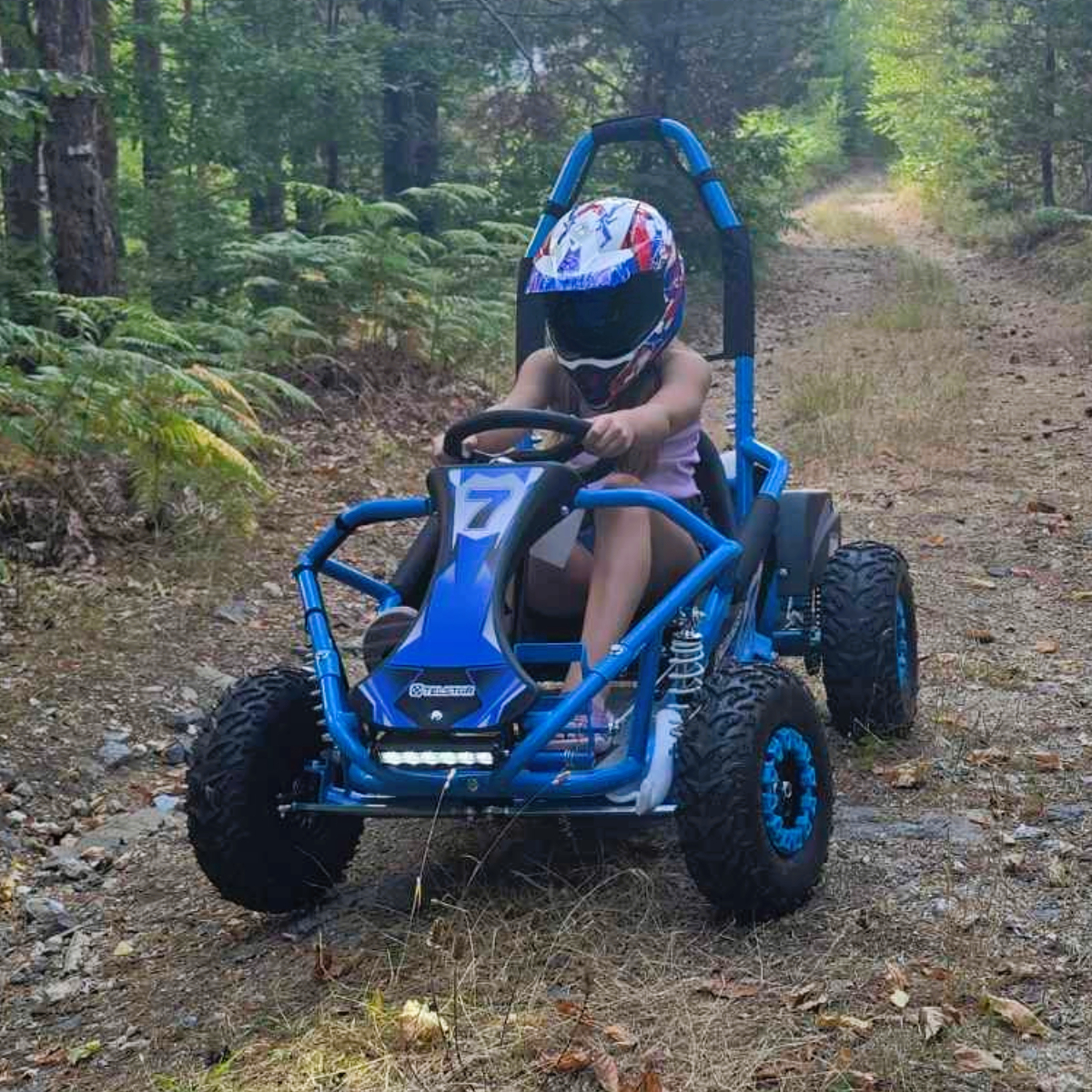 TelStar Kart-08 48V е стабилно и безопасно детско електрическо ATV бъги, създадено за приключения на открито. С удобна седалка, предпазна рамка и офроуд гуми, моделът предлага сигурност и забавление върху различни терени – трева, чакъл или асфалт. Лесно за управление и проектирано специално за деца.