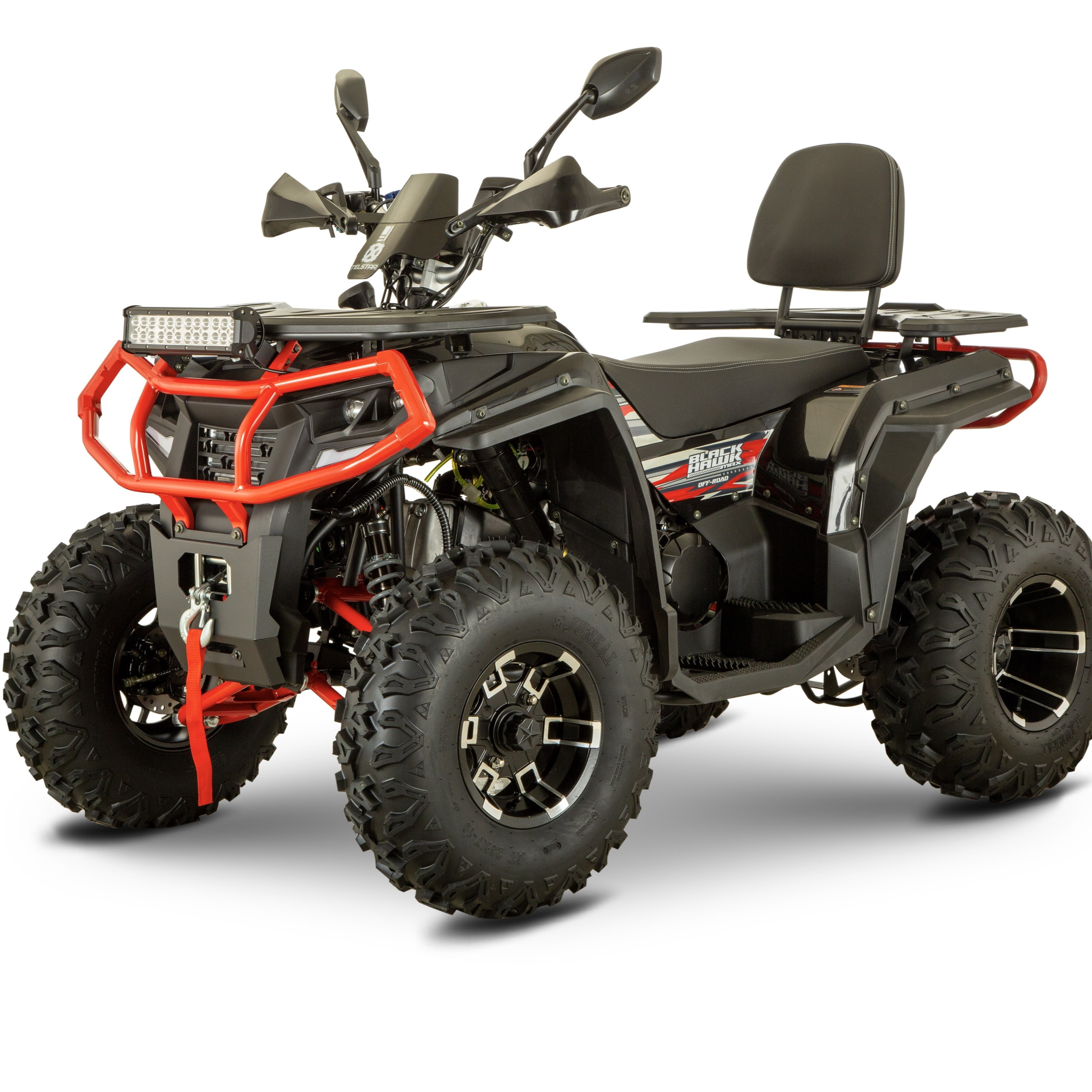 ATV TELSTAR TS-300 BLACK HOWK ДЪЛГА БАЗА 300CC с лебедка и всички екстри Нов модел 2025 с големи гуми, фабричен теглич, висок клас амортисьори и усилена рама.